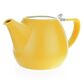It's a cute, friendly shape and a perfect sunflower yellow. This teapot comfortably holds three large (~14oz) mugs worth of tea. The large infuser is made of sturdy metal sheeting, not mesh, so it can stand on its own when removed from the pot. The size is great for the expansion of looseleaf teas (particularly if you like a strong cup) and the fine pinholes keep all but the smallest particles contained. By itself, the teapot keeps tea warm for about two and a half hours and the handle is always cool enough to use.