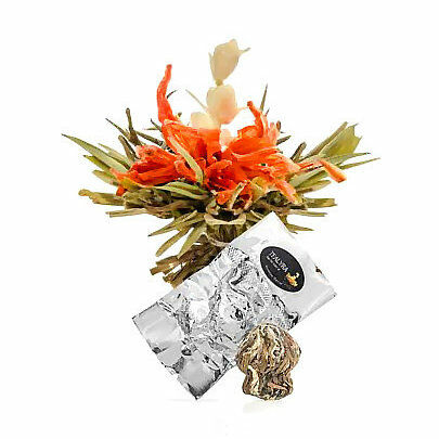 Las flores de té (té floreciente, o té de la flor) es una categoría de té chino especial que ha sido tejido a mano con flores que “florecen” en su taza por arte de magia. Tradicionalmente, el té floreciente se hace con té verde, junto con flores de jazmín, crisantemo, osmanto, lirio o amaranto. Es una forma única de invitar un momento de calma a su día.